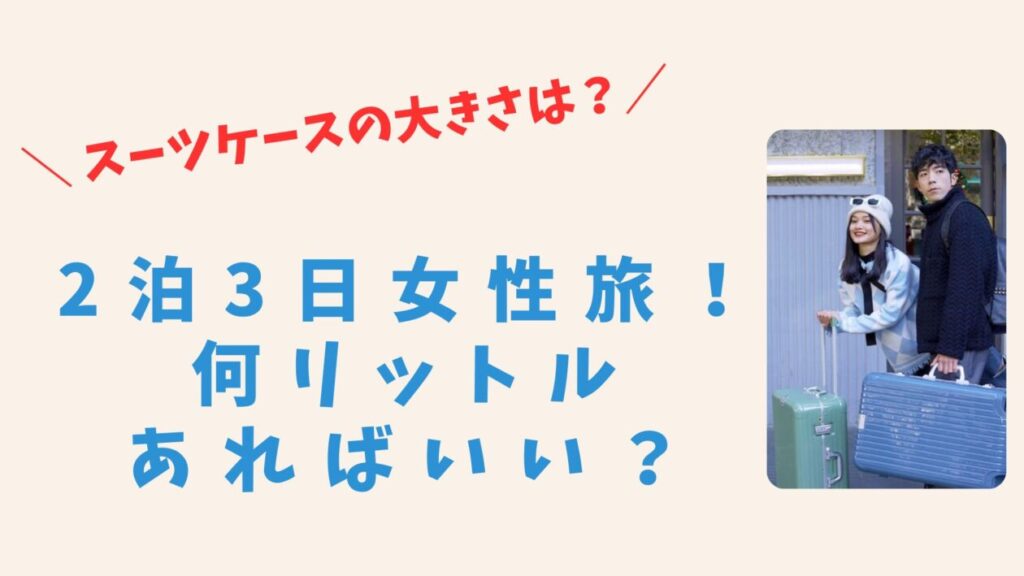 女性の2泊3日旅では、スーツケースは何リットルサイズがいいかご紹介します。 2泊3日の旅行って、意外と荷物が多くて大変ですよね。 特に女性は、着替えや化粧品など男性よりも多くの荷物を持っていく必要があり、スーツケース選びも重要です。 2泊3日なら... -